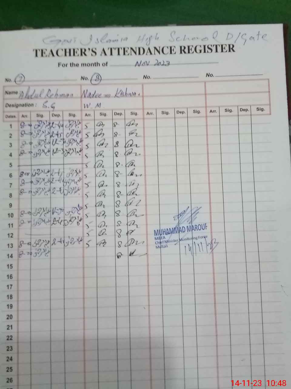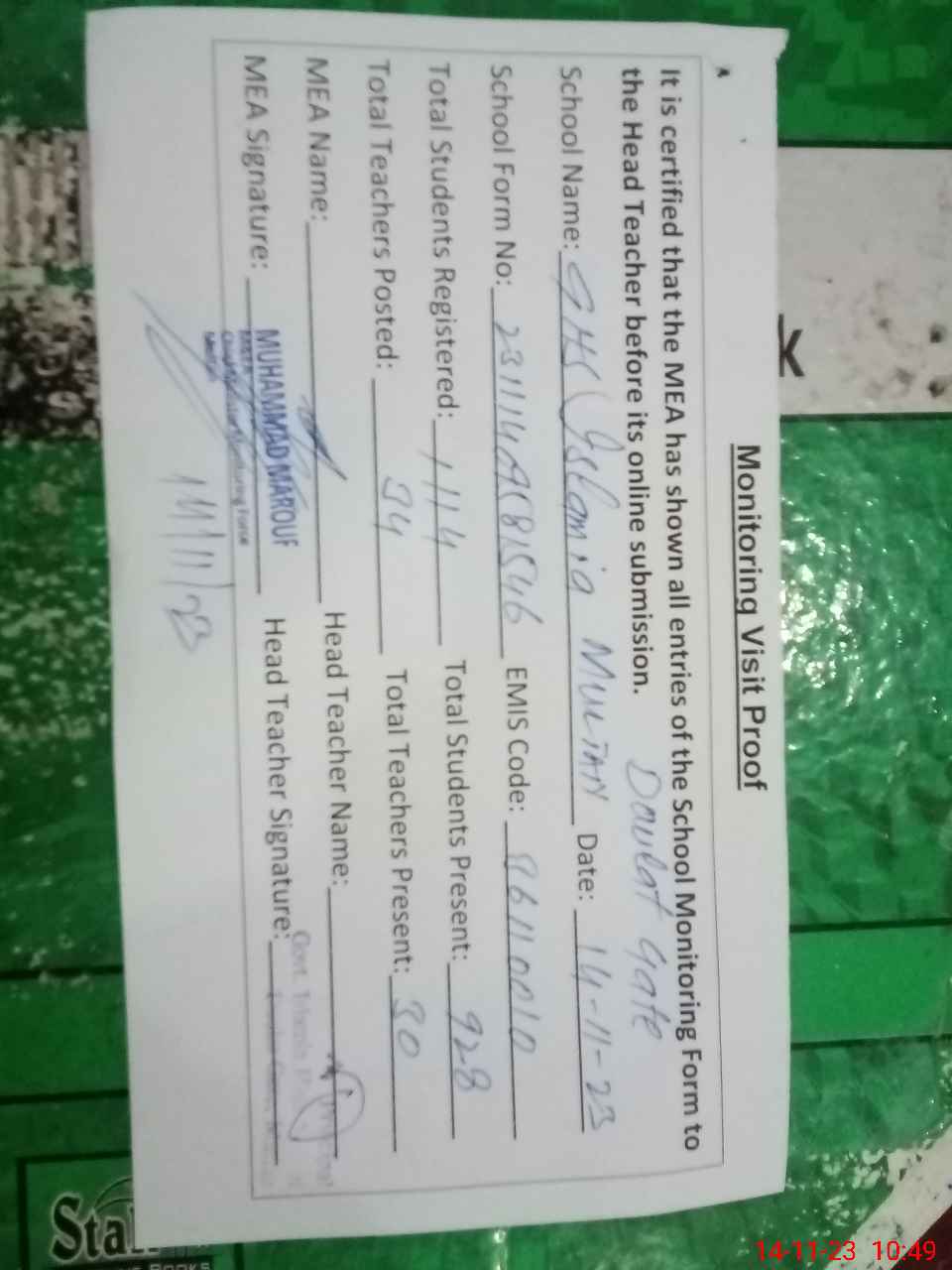 | EMIS Code: 36110010 | Name of School: GHS ISLAMIA DAULAT GATE MULTAN | |||