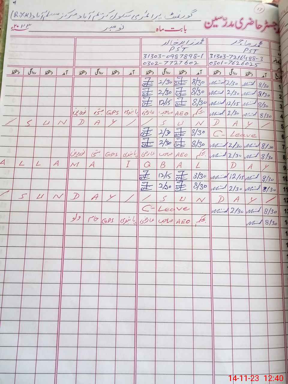 | Name: Mu**** Ma**** Designation: (School Headmaster's/Headmistress's) PST/PTC/JV Phone/Cell Number: 03**** |