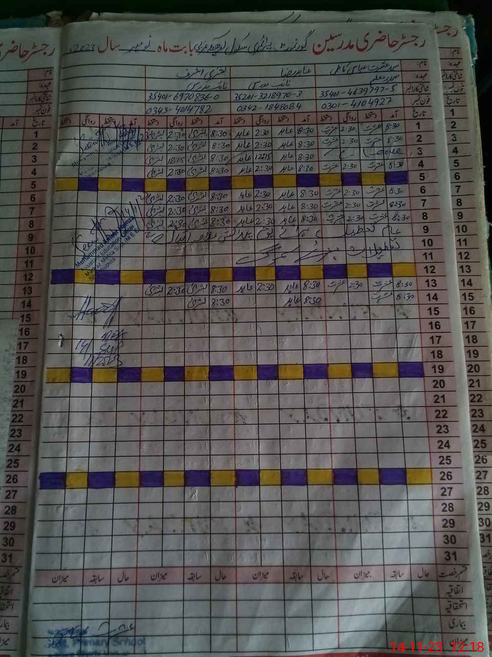 | Name: Sa**** Al**** Designation: (School Headmaster's/Headmistress's) PST Phone/Cell Number: 03**** |