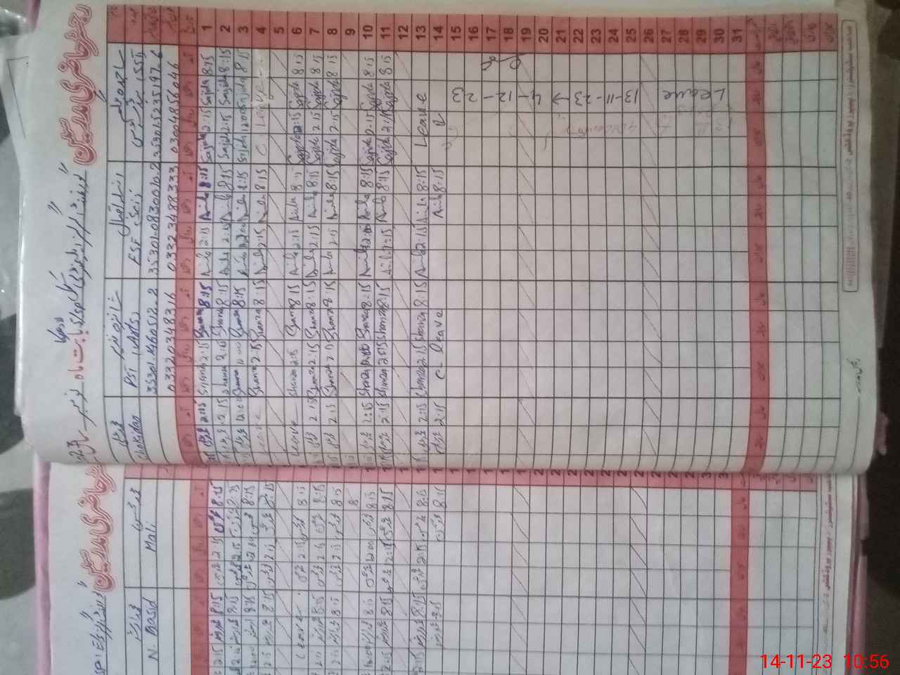 | CNIC | Full Name | Designation | R/C | Absence During Last Calender Month |