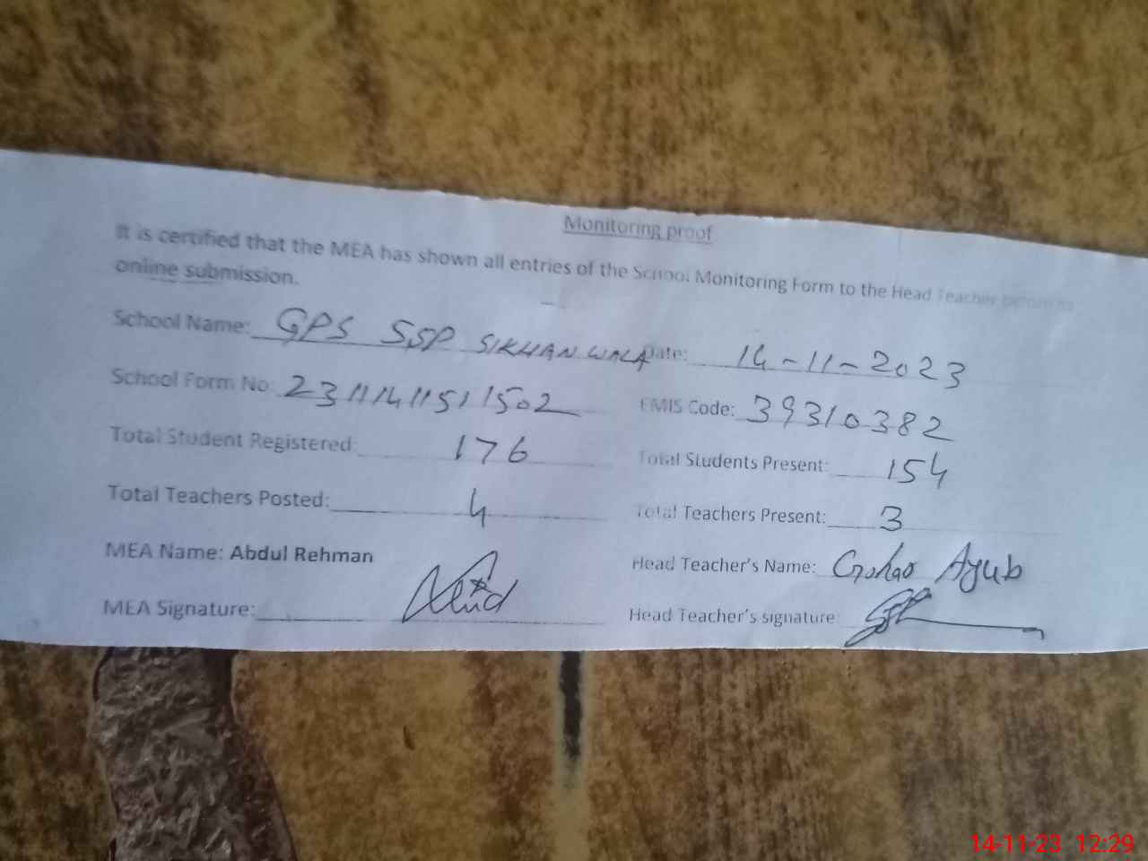 | EMIS Code: 39310382 | Name of School: GPS 5-SP SIKHAN WALA | |||