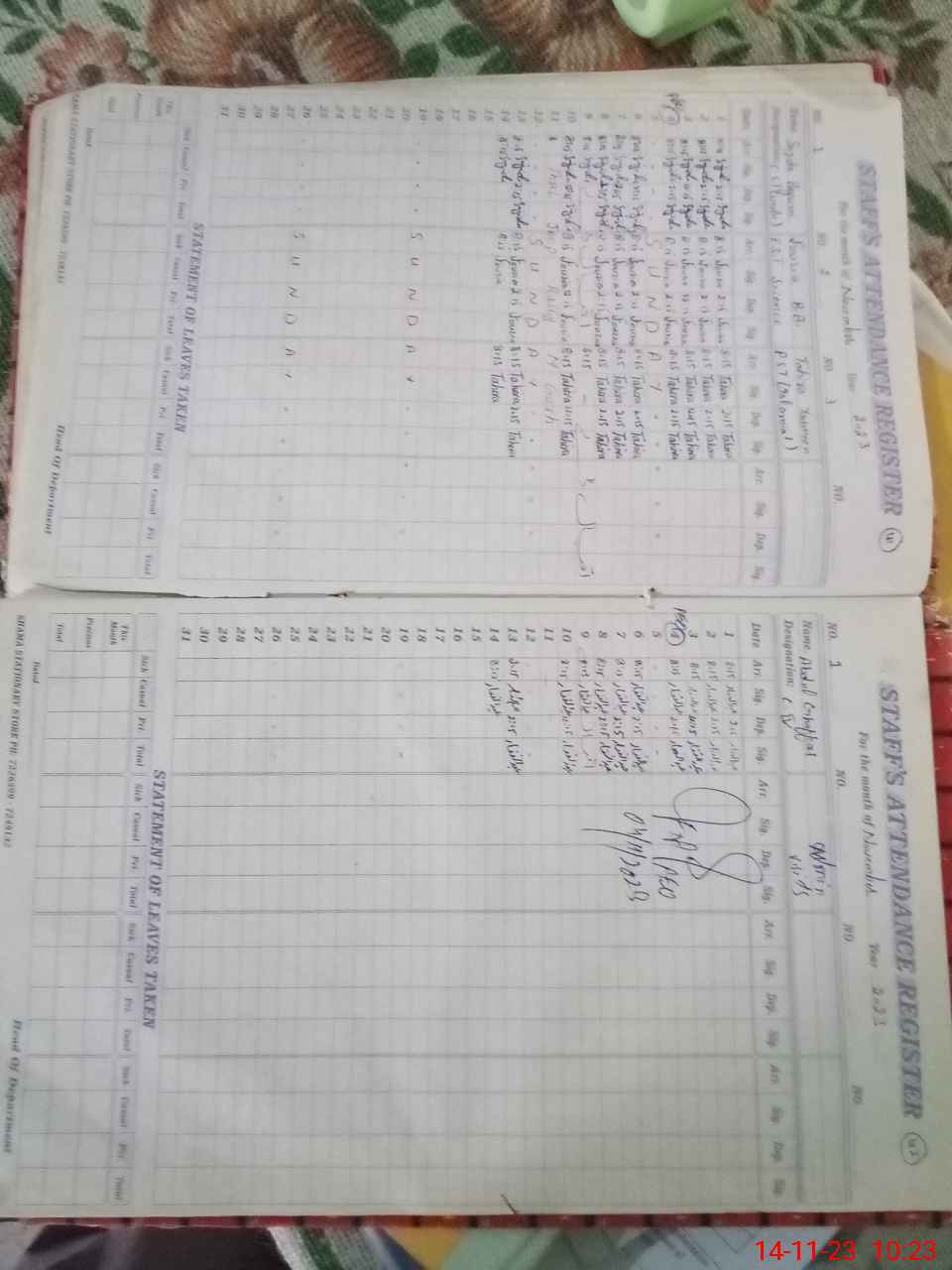 | CNIC | Full Name | Designation | R/C | Absence During Last Calender Month |