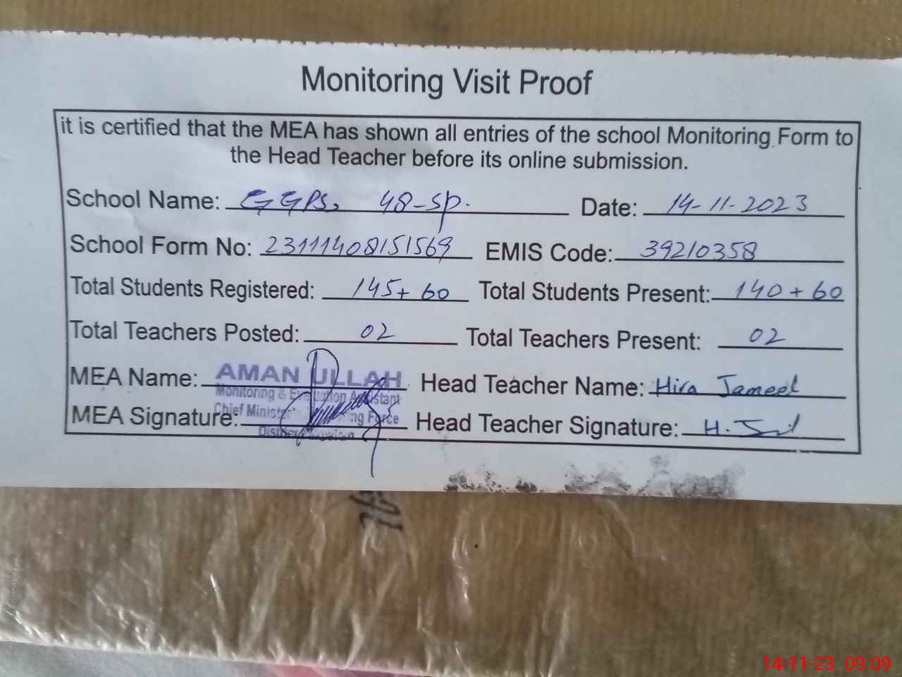 | EMIS Code: 39210358 | Name of School: GGPS 48 SP | |||