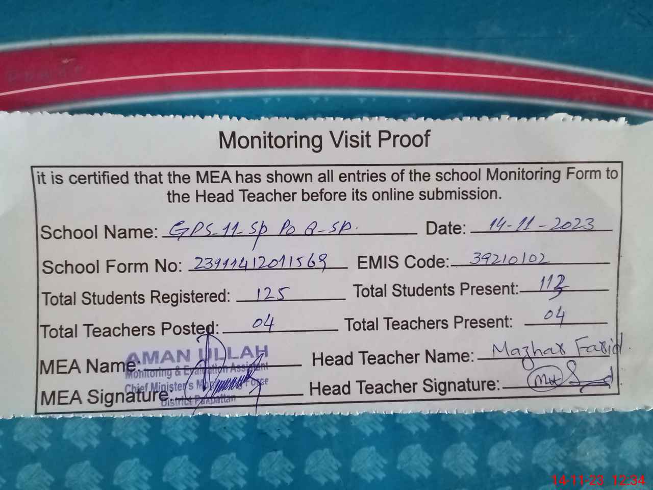 | EMIS Code: 39210102 | Name of School: GPS 11/SP P.O 8/S.P PAKPATTAN | |||