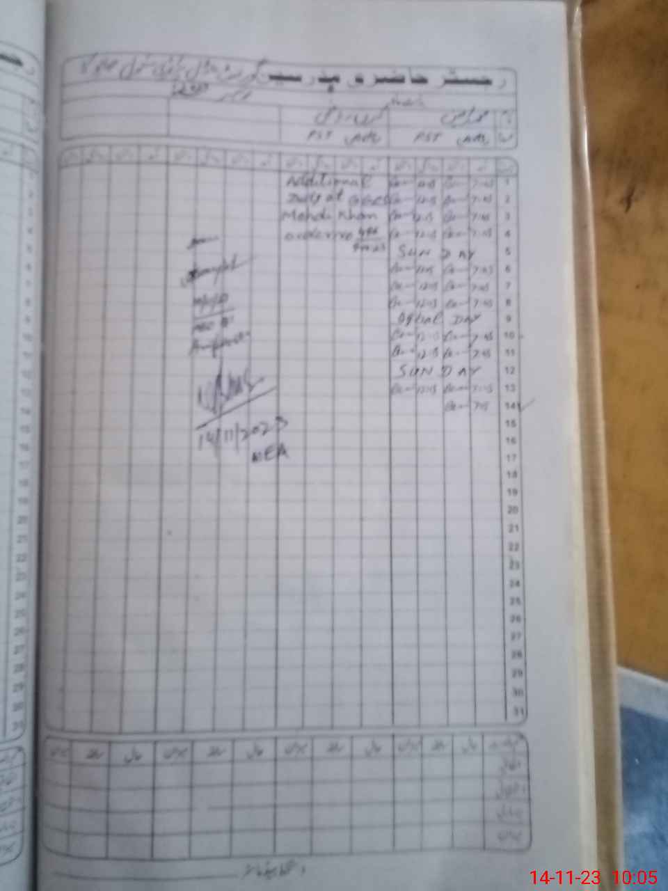 | CNIC | Full Name | Designation | R/C | Absence During Last Calender Month |