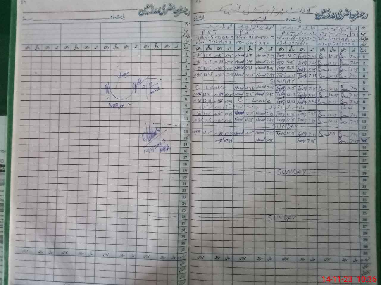 | CNIC | Full Name | Designation | R/C | Absence During Last Calender Month |
