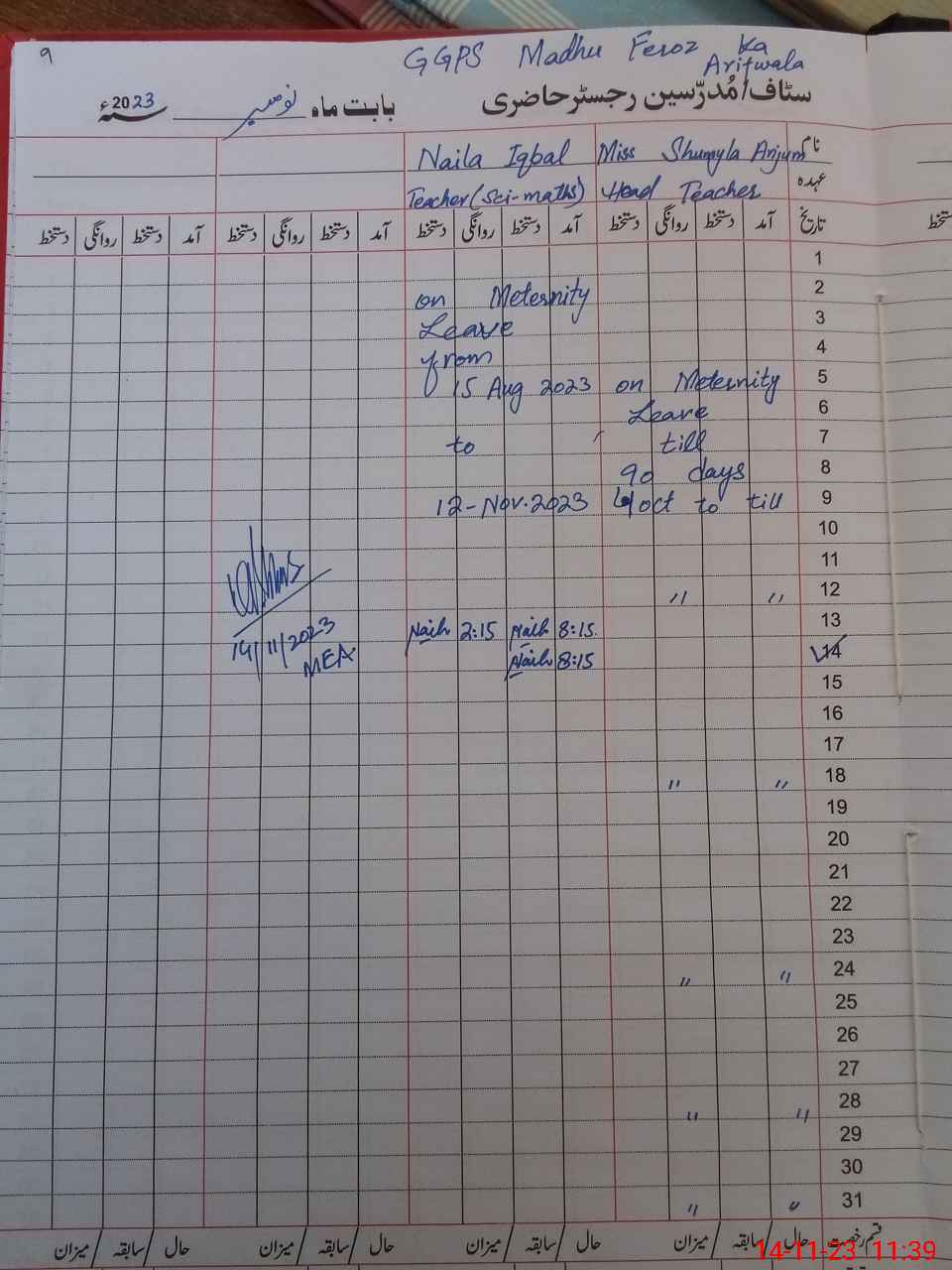 | 31**** | Sh**** An**** | 1 | 28 | 3 | 0 | 28 | 0 | 0 | 0 | 0 | 0 | Maternity | |