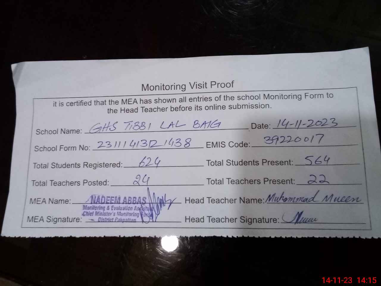 | EMIS Code: 39220017 | Name of School: GHS TIBBI LAL BAIG | |||