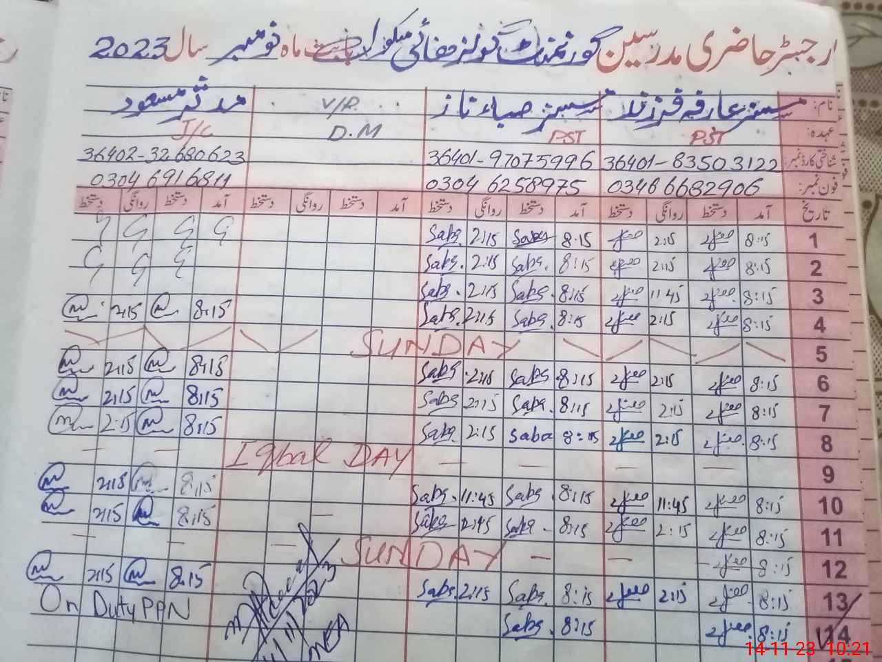 | Name: NI**** RA**** Designation: (School Headmaster's/Headmistress's) S.HM Phone/Cell Number: 03**** |