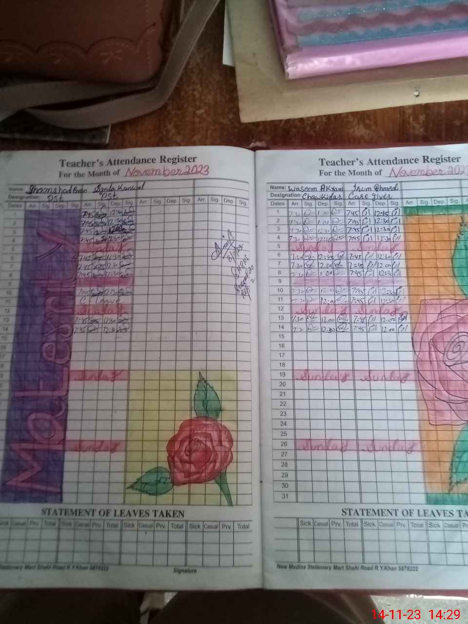 | CNIC | Full Name | Designation | R/C | Absence During Last Calender Month |