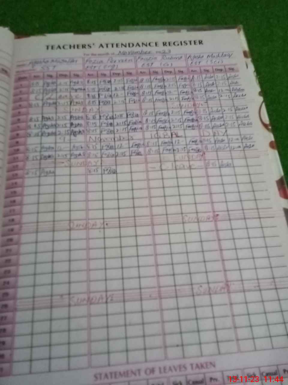 | No. of Students Present - Female | 24 | 0 | 22 | 14 | 14 | 9 | 10 | 6 | 11 | 11 | 10 | 131 | ||||