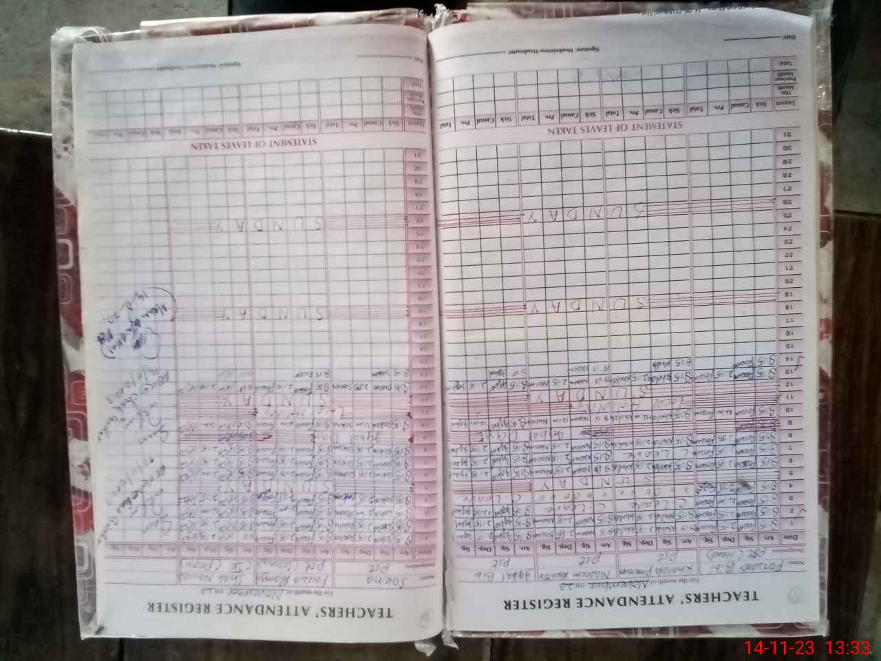 | CNIC | Full Name | Designation | R/C | Absence During Last Calender Month |