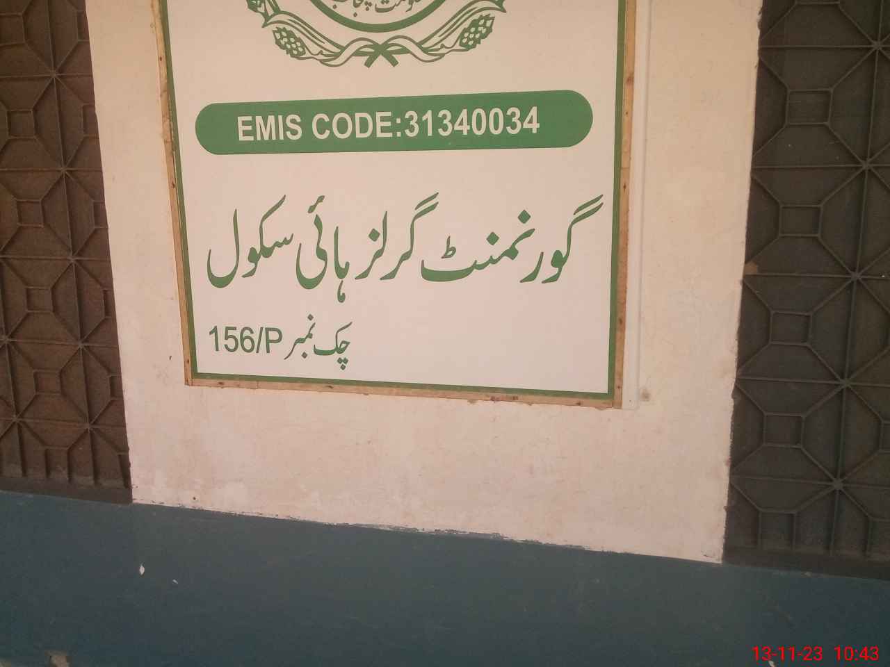 | EMIS Code: 31340034 | Name of School: GGHS CHAK NO. 156/P | |||
