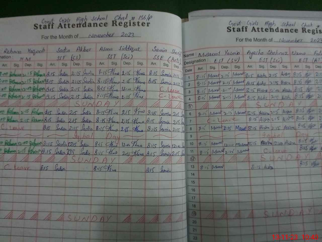 | CNIC | Full Name | Designation | R/C | Absence During Last Calender Month |