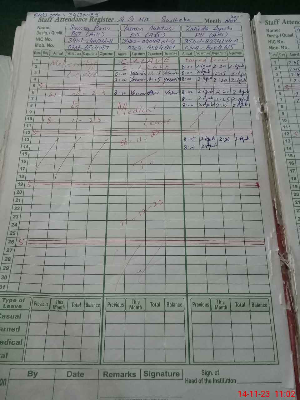 | Name: NU**** AM**** Designation: (School Headmaster's/Headmistress's) SST INC HEAD Phone/Cell Number: 03**** |