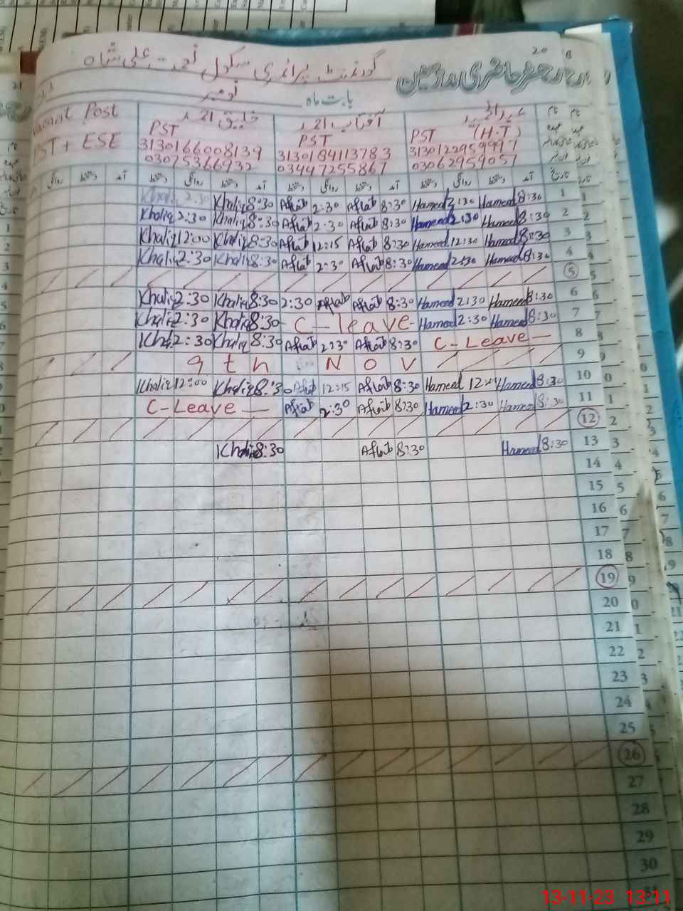 | Name: Ab**** Ha**** Designation: (School Headmaster's/Headmistress's) PST Phone/Cell Number: 03**** |