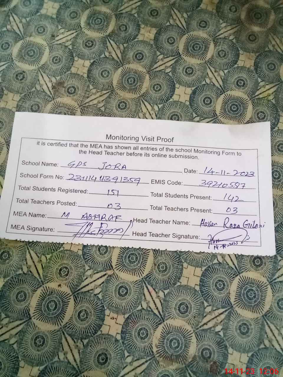 | EMIS Code: 39210587 | Name of School: GPS JORRA | |||