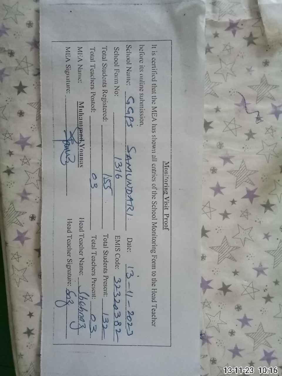 | EMIS Code: 32320382 | Name of School: GGPS SAMANDARI | |||