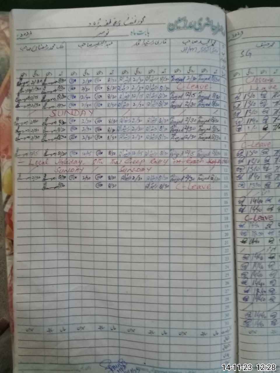 | CNIC | Full Name | Designation | R/C | Absence During Last Calender Month |