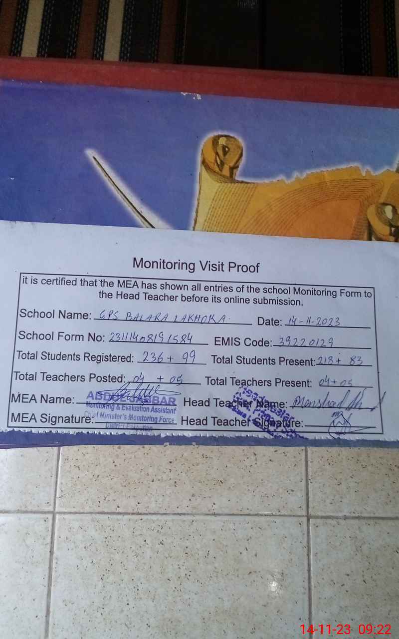 | EMIS Code: 39220129 | Name of School: GPS BALARA LAKHOKA | |||