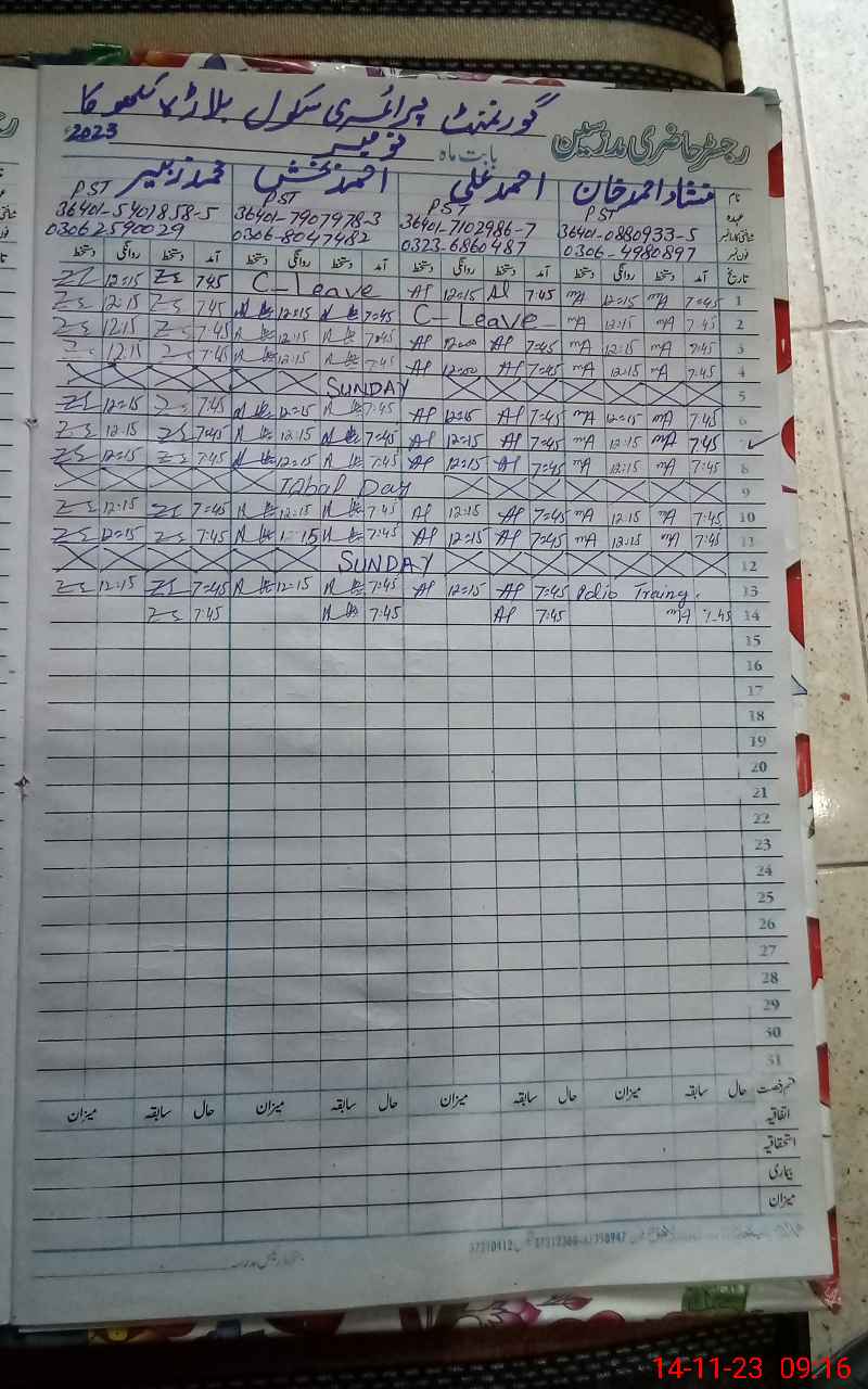 | CNIC | Full Name | Designation | R/C | Absence During Last Calender Month |
