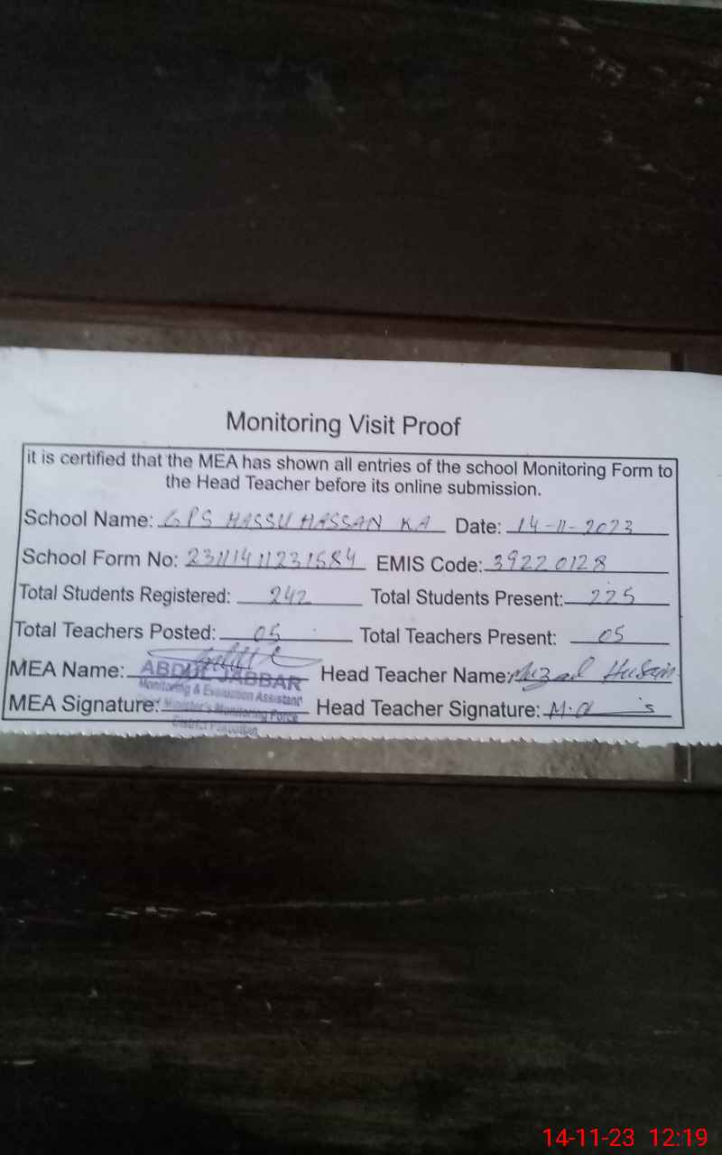 | EMIS Code: 39220128 | Name of School: GPS HASSU HASSAN KA | |||