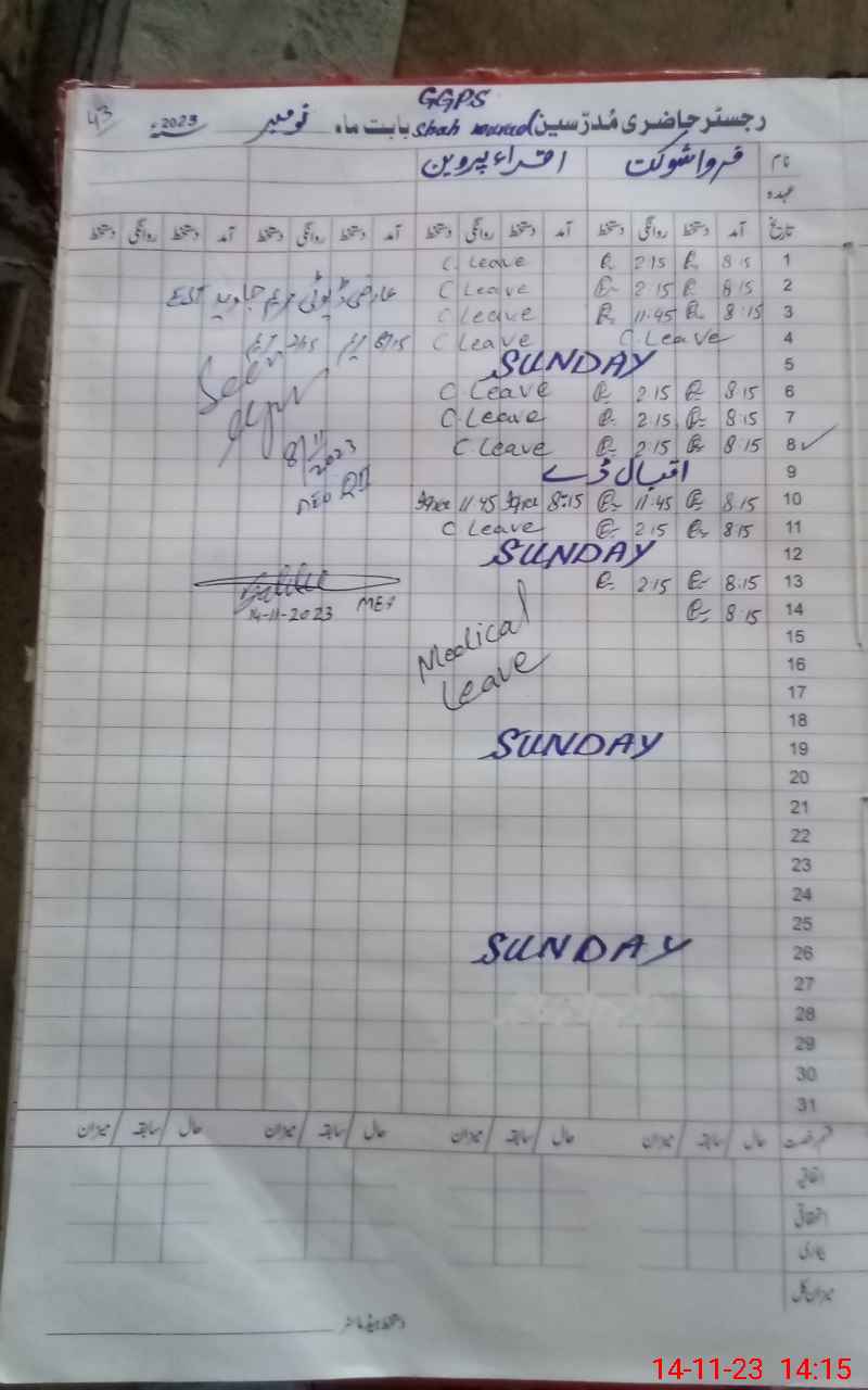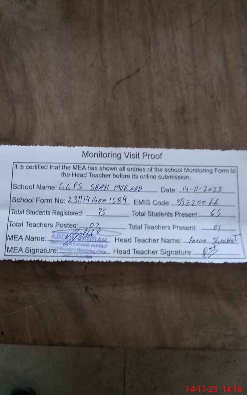| EMIS Code: 39220066 | Name of School: GGPS SHAH MURAAD | |||