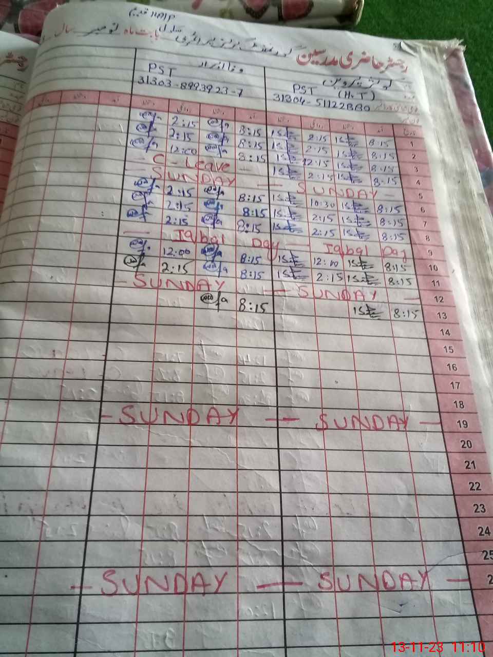 | CNIC | Full Name | Designation | R/C | Absence During Last Calender Month |