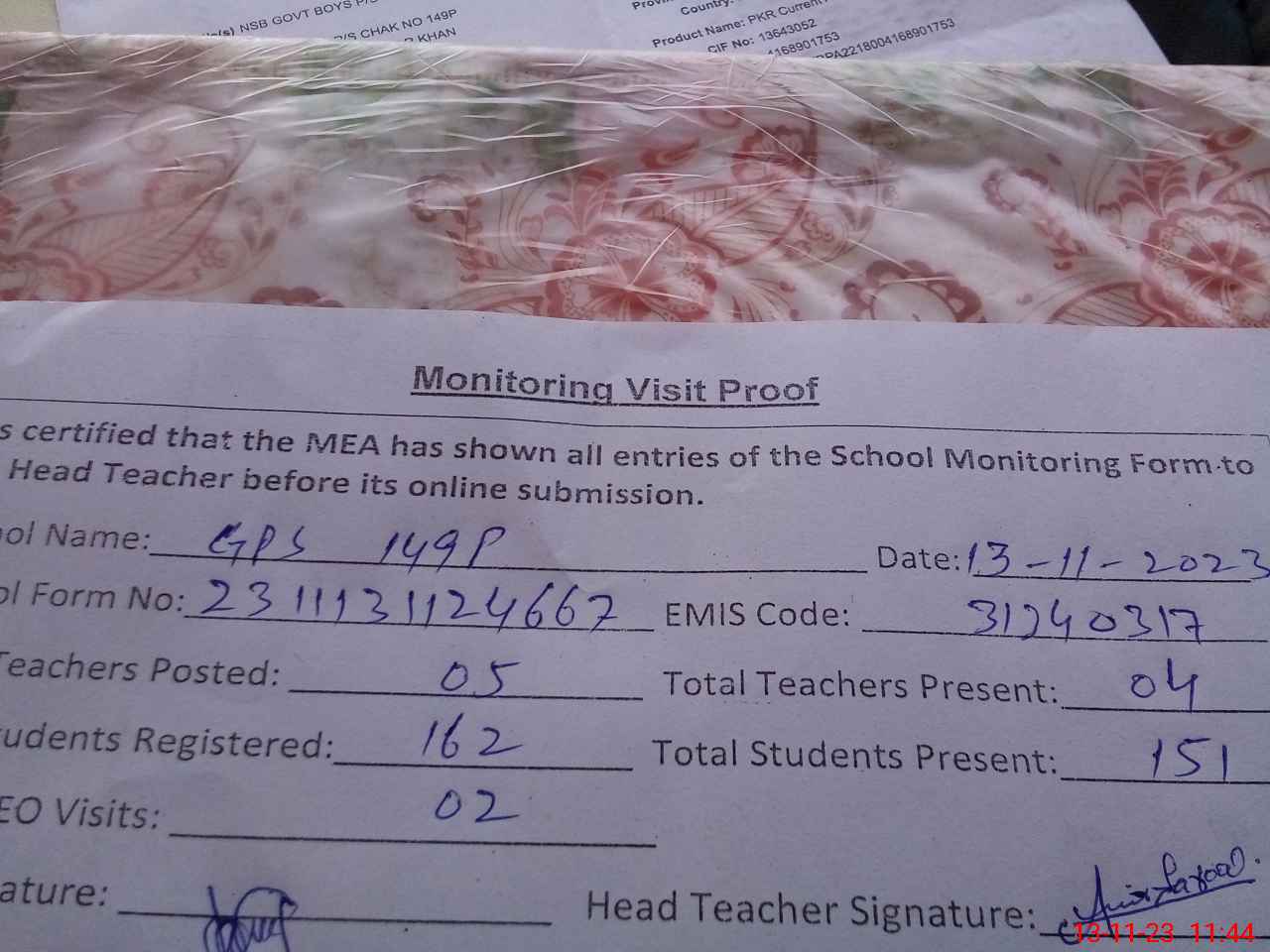 | EMIS Code: 31340317 | Name of School: GPS CHAK 149/P | |||