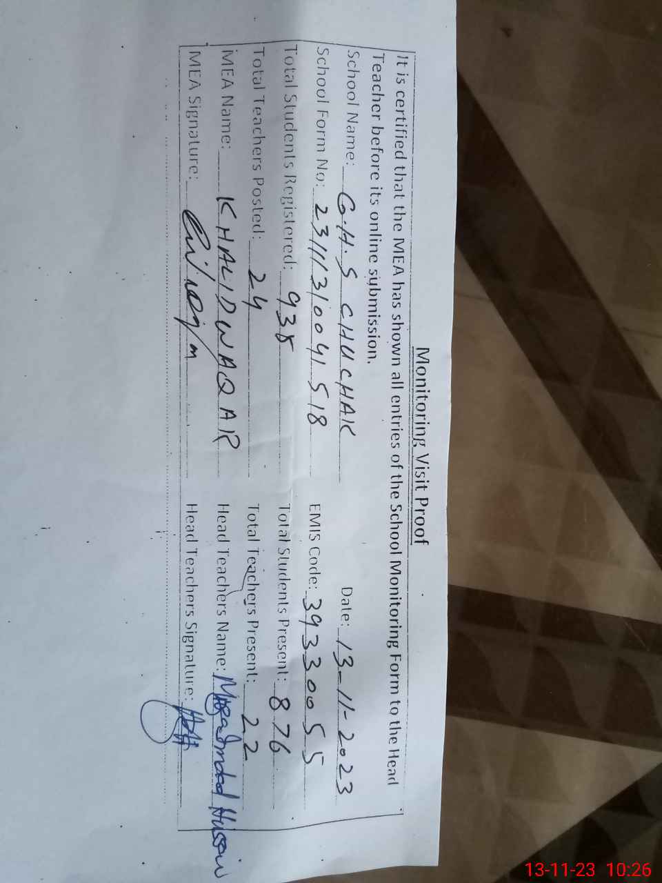 | EMIS Code: 39330055 | Name of School: GHS CHUCHAK | |||