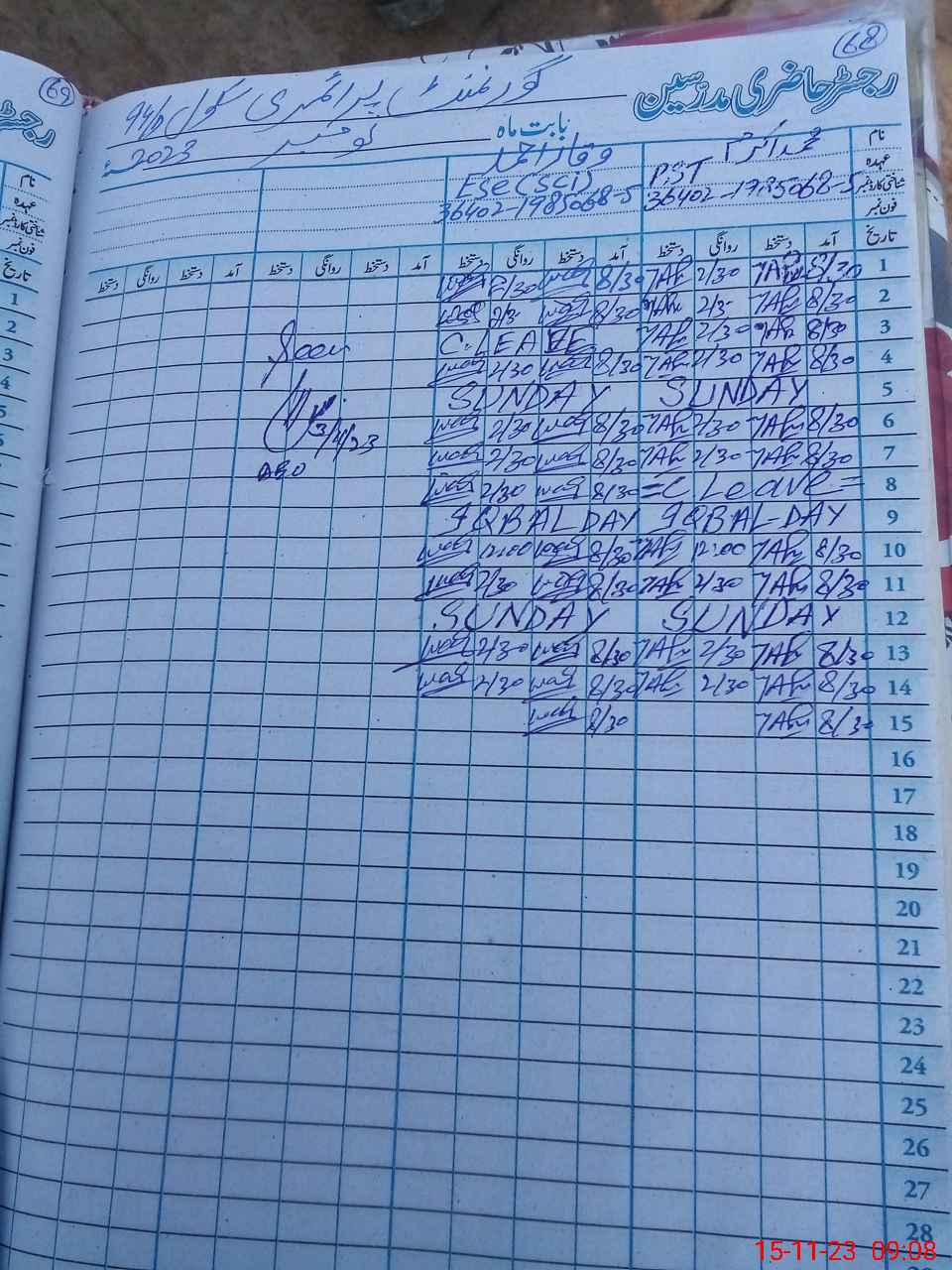 | Name: MU**** AK**** Designation: (School Headmaster's/Headmistress's) PST Phone/Cell Number: 03**** |