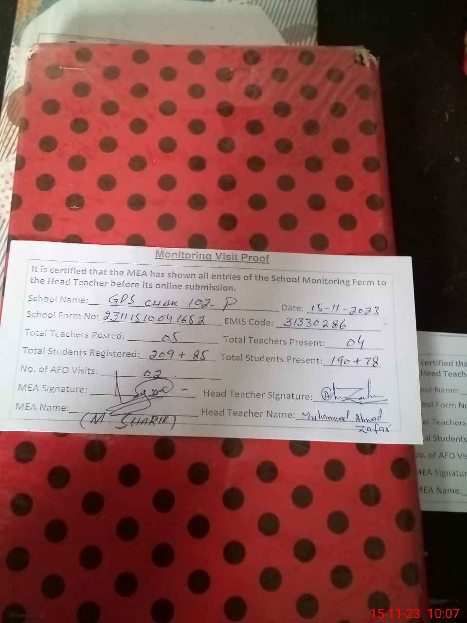 | EMIS Code: 31330286 | Name of School: GPS CHAK 102/P | |||