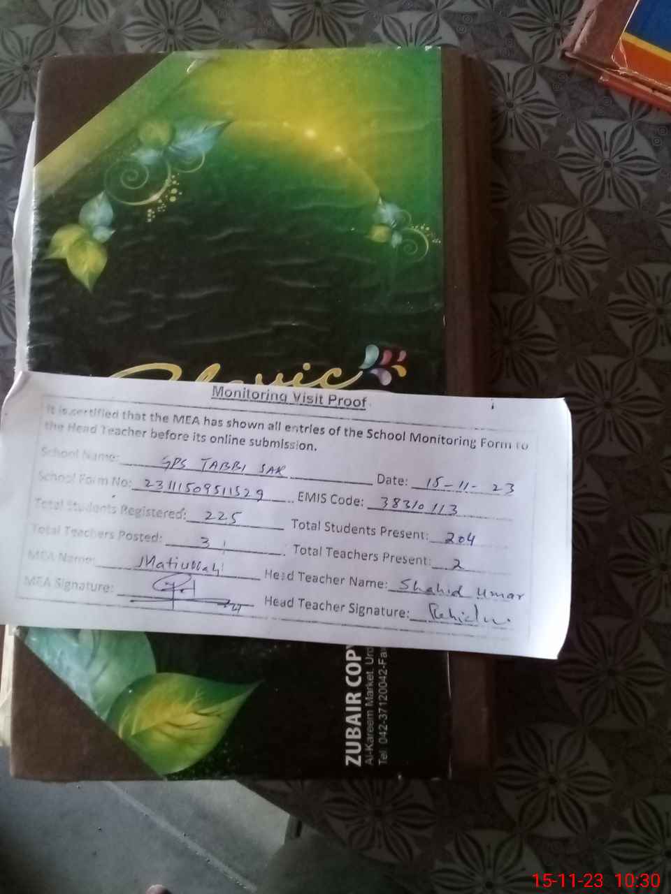 | Attendance Register | Head Teacher | MEA with School | Visit Proof |