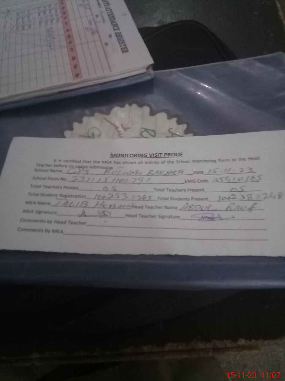 | EMIS Code: 35410165 | Name of School: GPS KOT NABI BAKHSH | |||