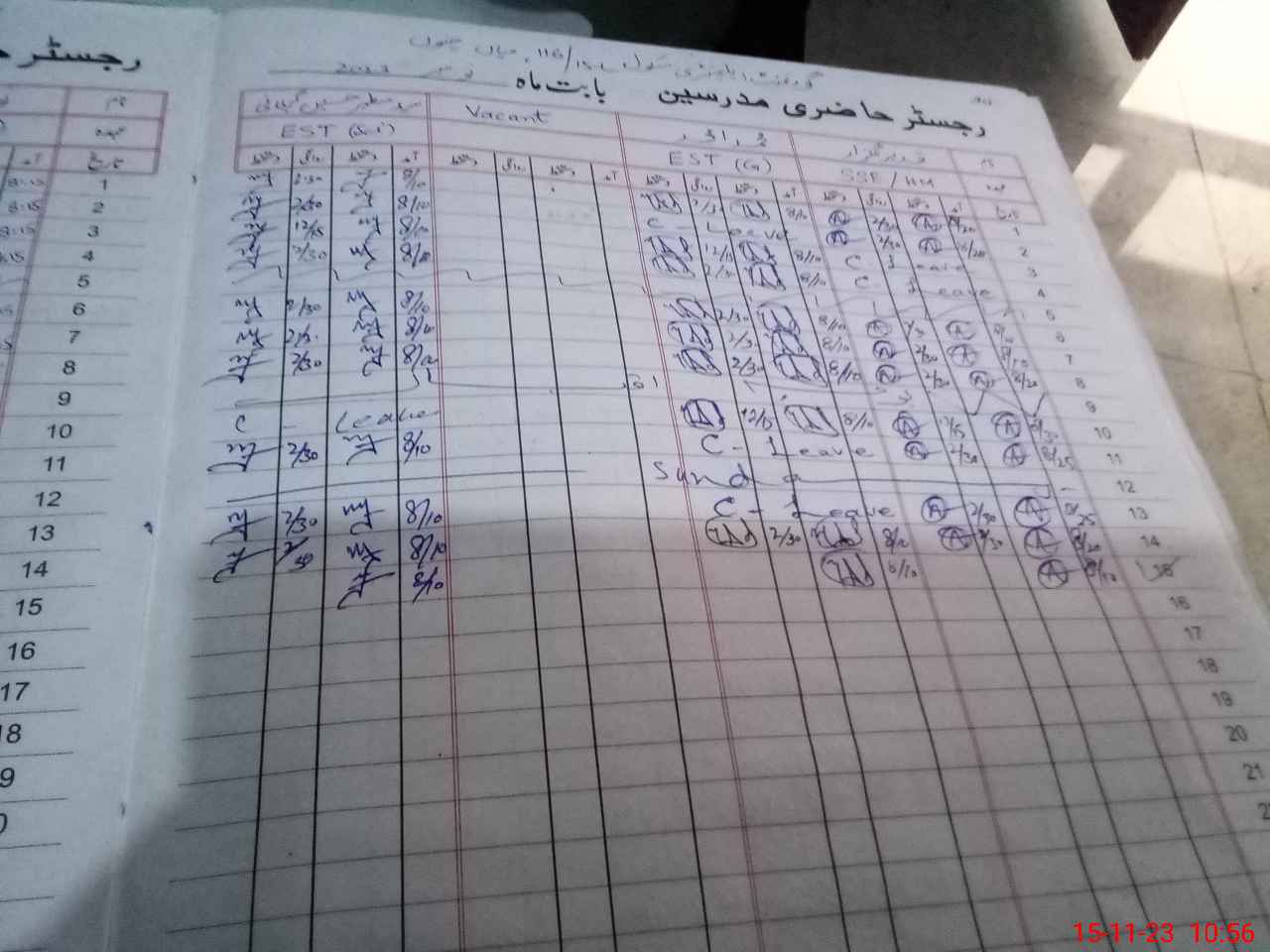 | CNIC | Full Name | Designation | R/C | Absence During Last Calender Month |