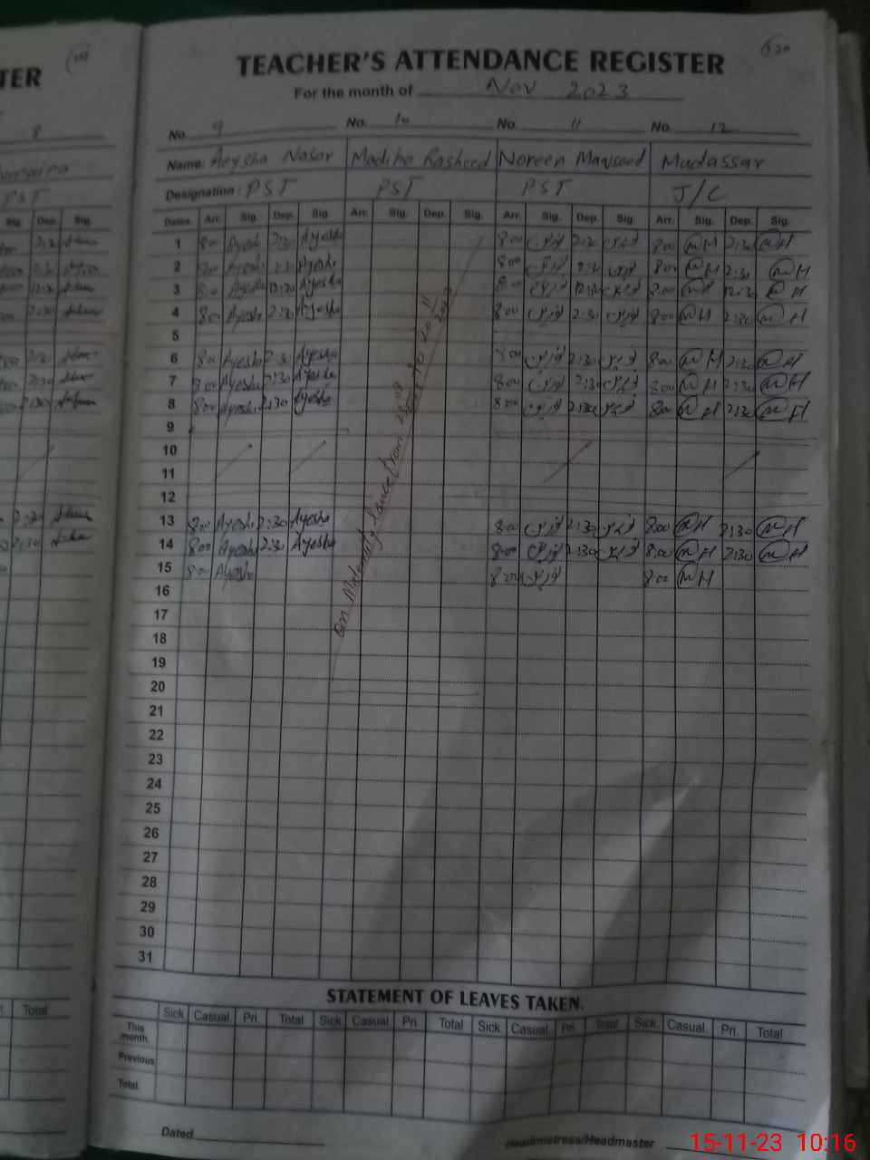 | CNIC | Full Name | Designation | R/C | Absence During Last Calender Month |