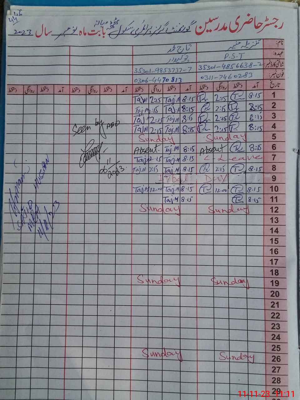 | Name: Sh**** Ra**** Designation: (School Headmaster's/Headmistress's) PTC/JV Phone/Cell Number: 03**** |