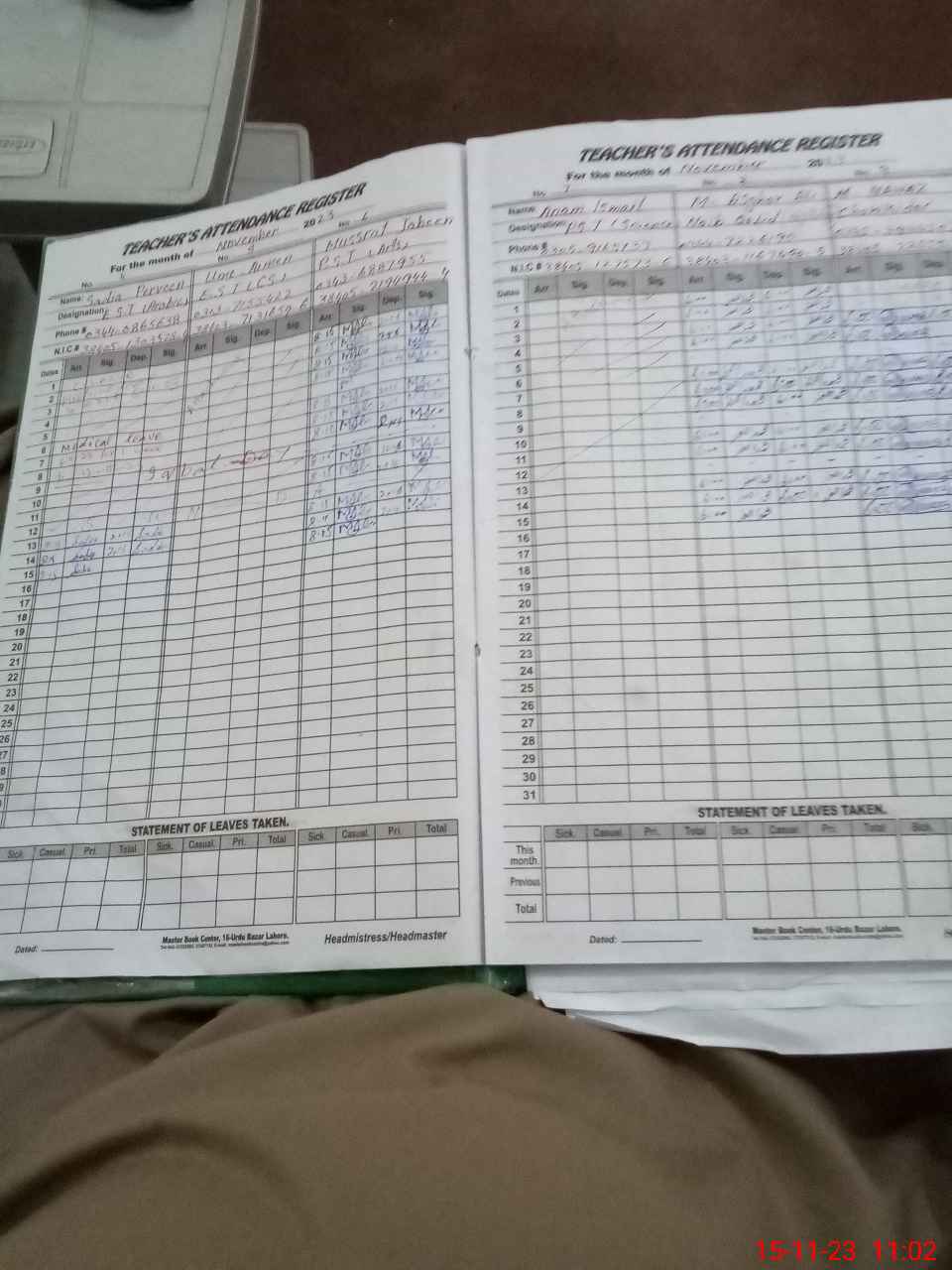 | CNIC | Full Name | Designation | R/C | Absence During Last Calender Month |