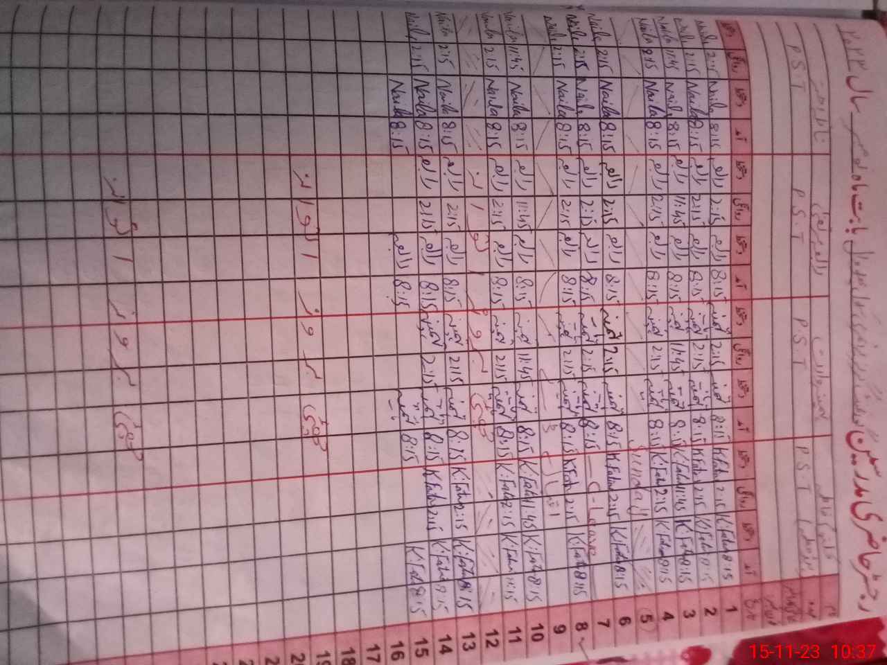| CNIC | Full Name | Designation | R/C | Absence During Last Calender Month |