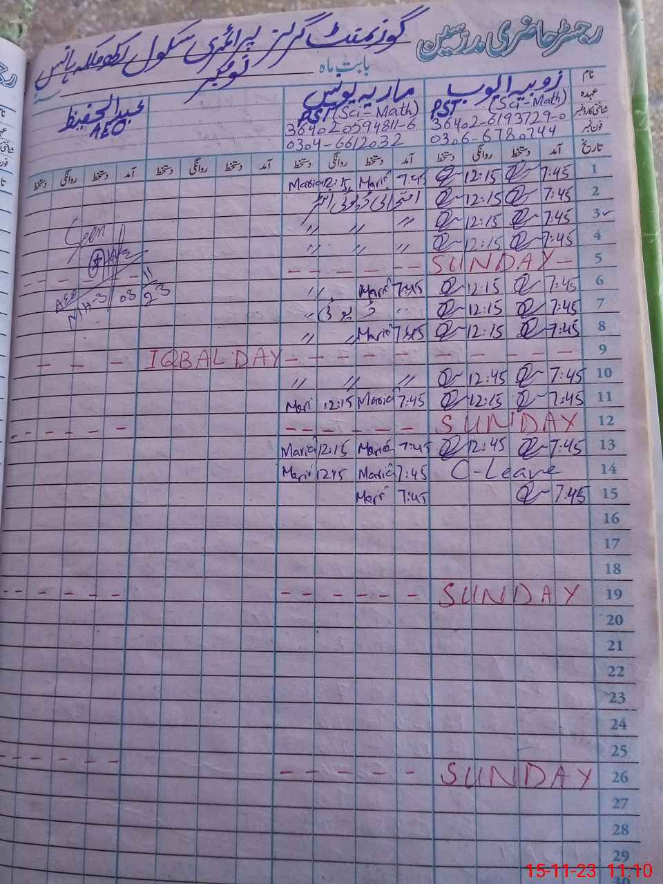| CNIC | Full Name | Designation | R/C | Absence During Last Calender Month |