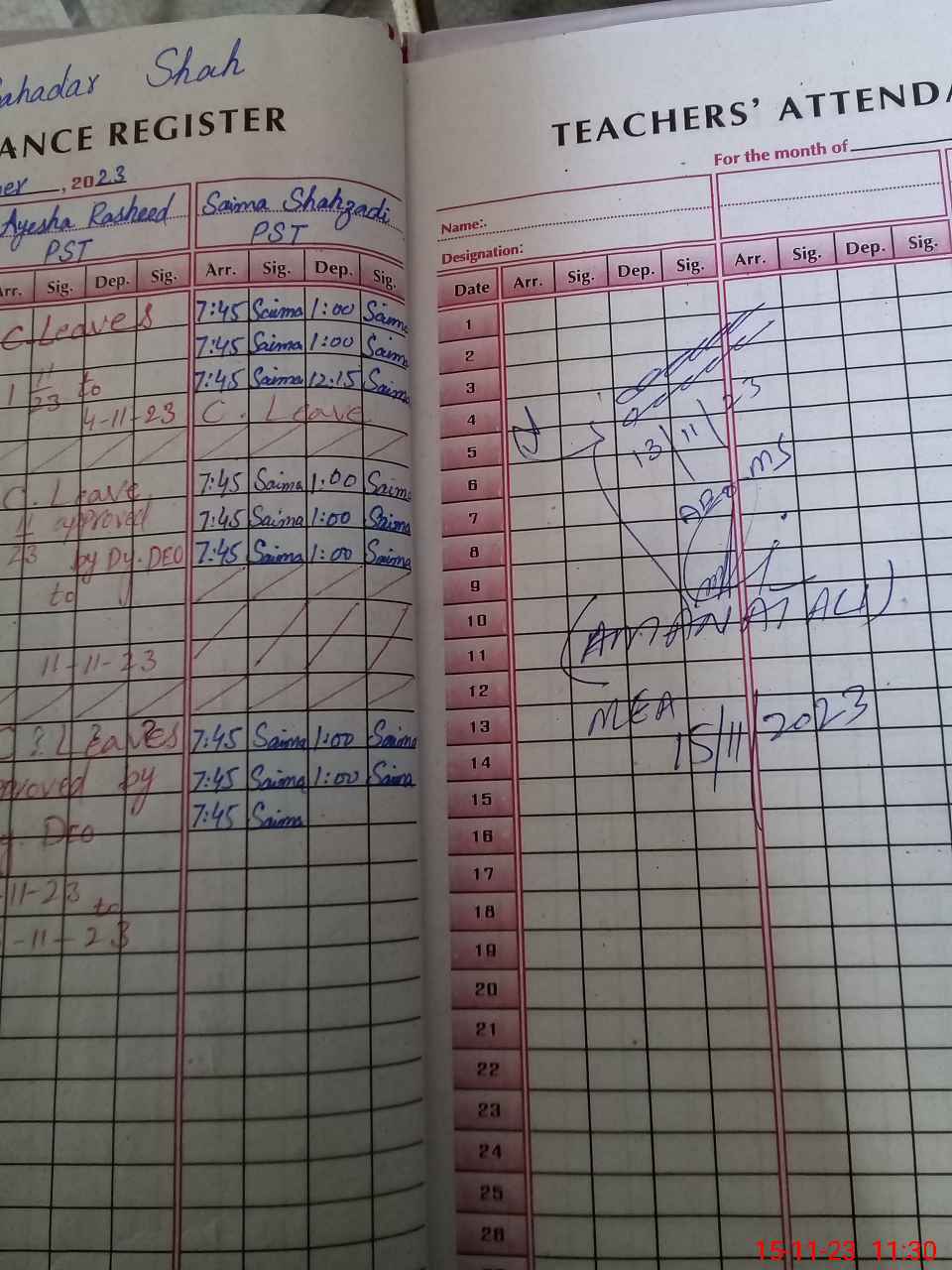 | Name: SA**** AZ**** Designation: (School Headmaster's/Headmistress's) PST Phone/Cell Number: 03**** |