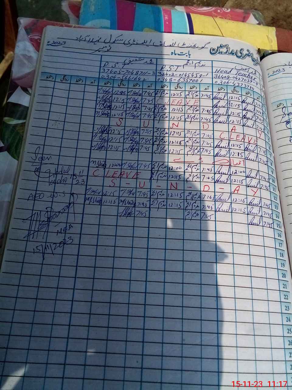 | Name: MAS**** Designation: (School Headmaster's/Headmistress's) PST Phone/Cell Number: 03**** |