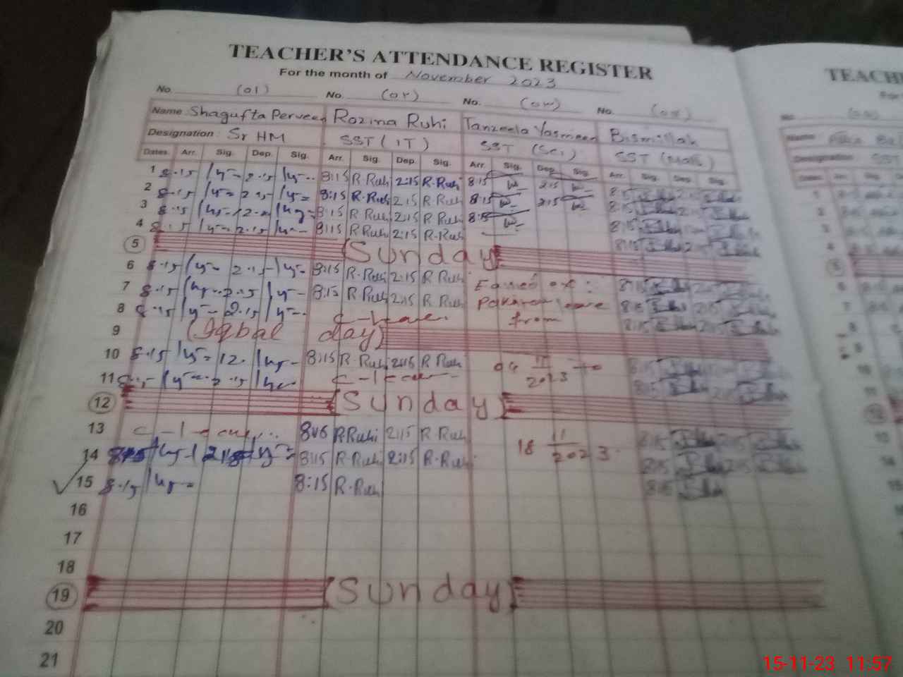 | Remarks (Use Separate Page if Required): Note Miss humaira liaquat EST SCI ABSENT WEF 20 SEPTEMBER 2023 TO TILL DATE | |||||