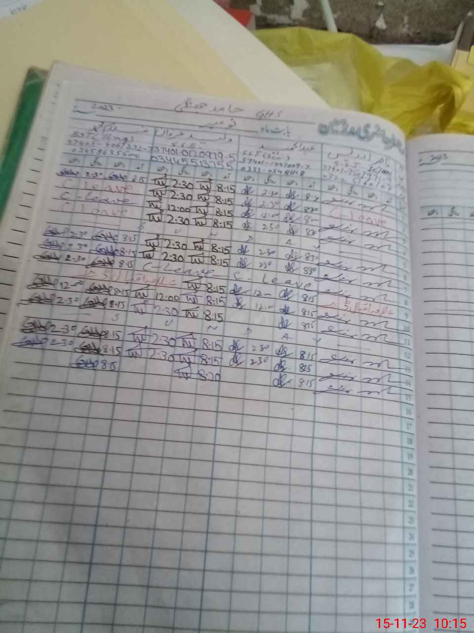 | CNIC | Full Name | Designation | R/C | Absence During Last Calender Month |