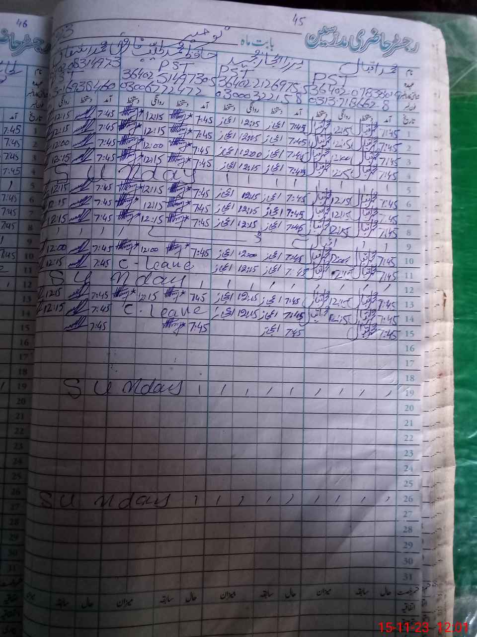 | CNIC | Full Name | Designation | R/C | Absence During Last Calender Month |