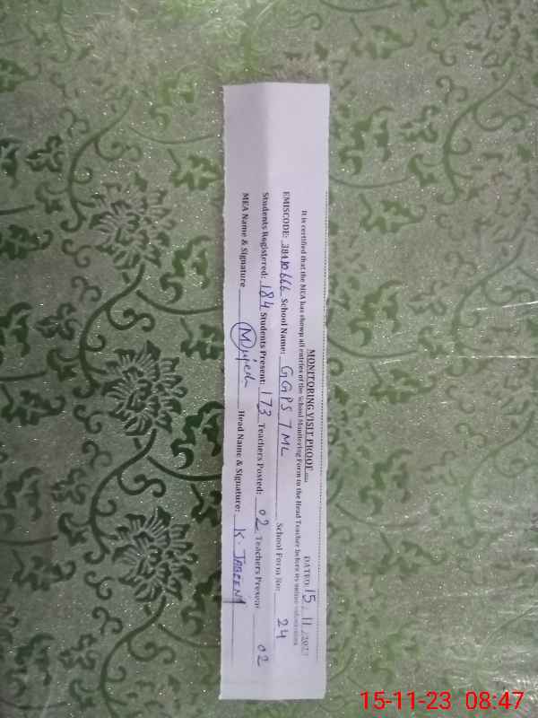 | Monitoring Date: 15-11-2023 | Start Time: 15-11-2023 08:15 AM | End Time: 15-11-2023 08:51 AM | Name of MEA: MU**** MU**** RA**** | |