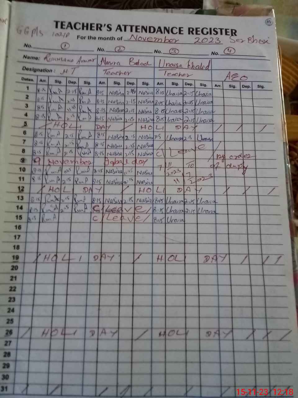 | CNIC | Full Name | Designation | R/C | Absence During Last Calender Month |