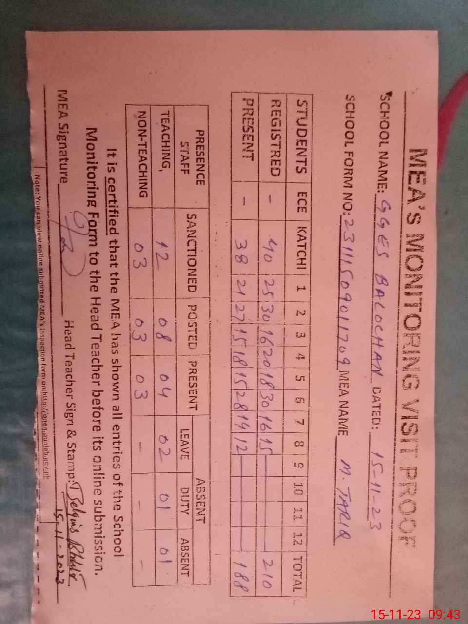 | EMIS Code: 36410150 | Name of School: GGES BALOCHAN, NAWAN SHEHR | |||