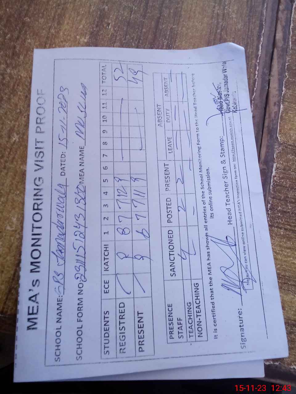 | EMIS Code: 36410653 | Name of School: GPS JAMADAR WALA | |||