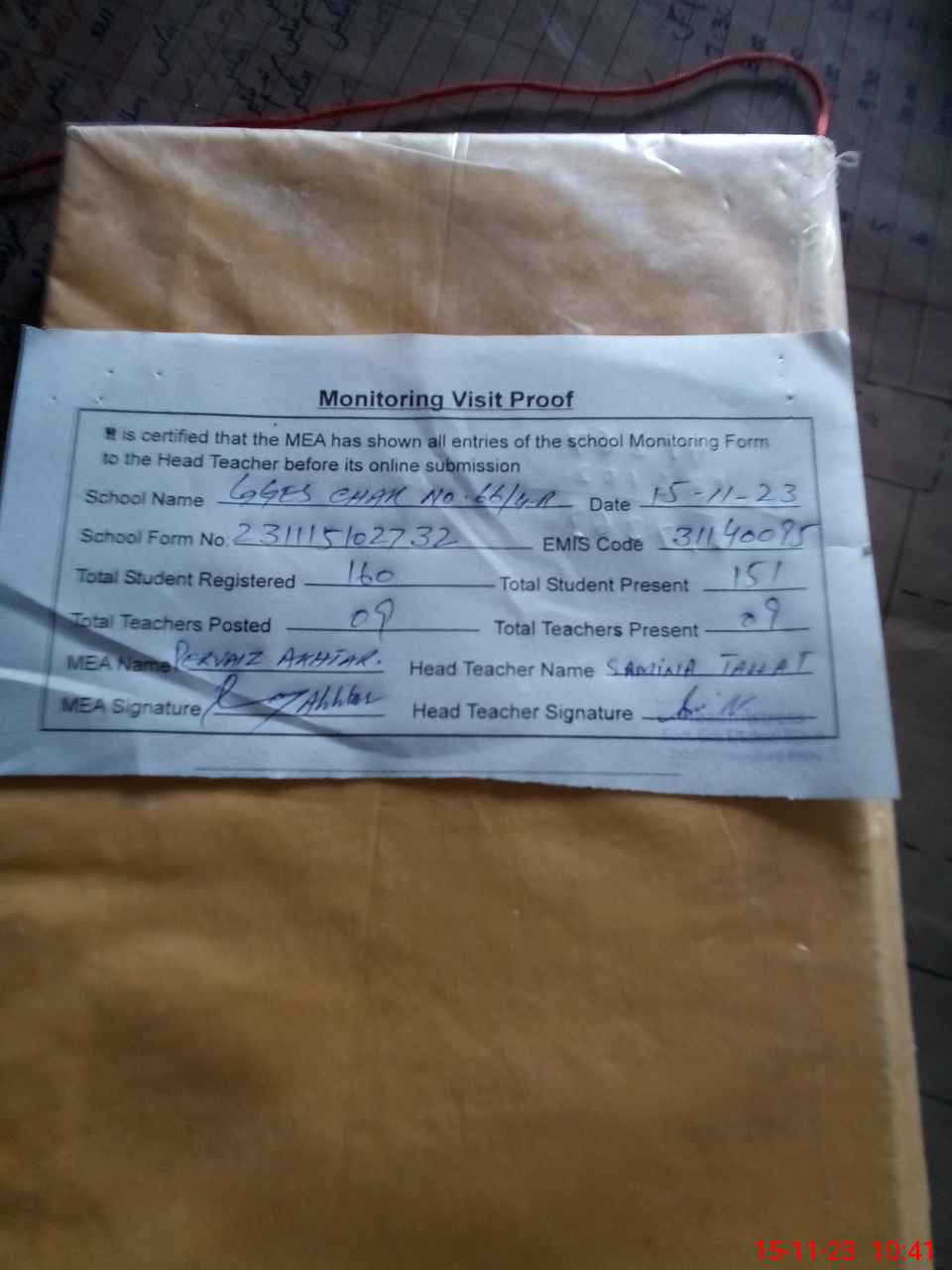 | EMIS Code: 31140095 | Name of School: GGES CHAK NO 66/4-R | |||